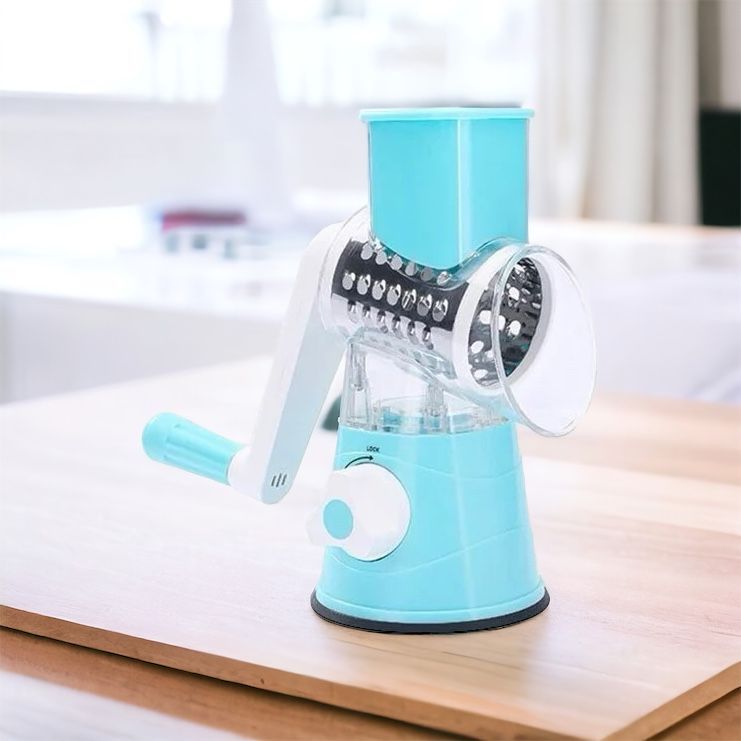 Three Blade Manual Rotary Vegetable Slicer, Mandoline, Shredder, Cheese Grater, Potato Slicer, Cole Slaw maker, Nuts Grater with Heavy Suction Base and Easy Clean Up
